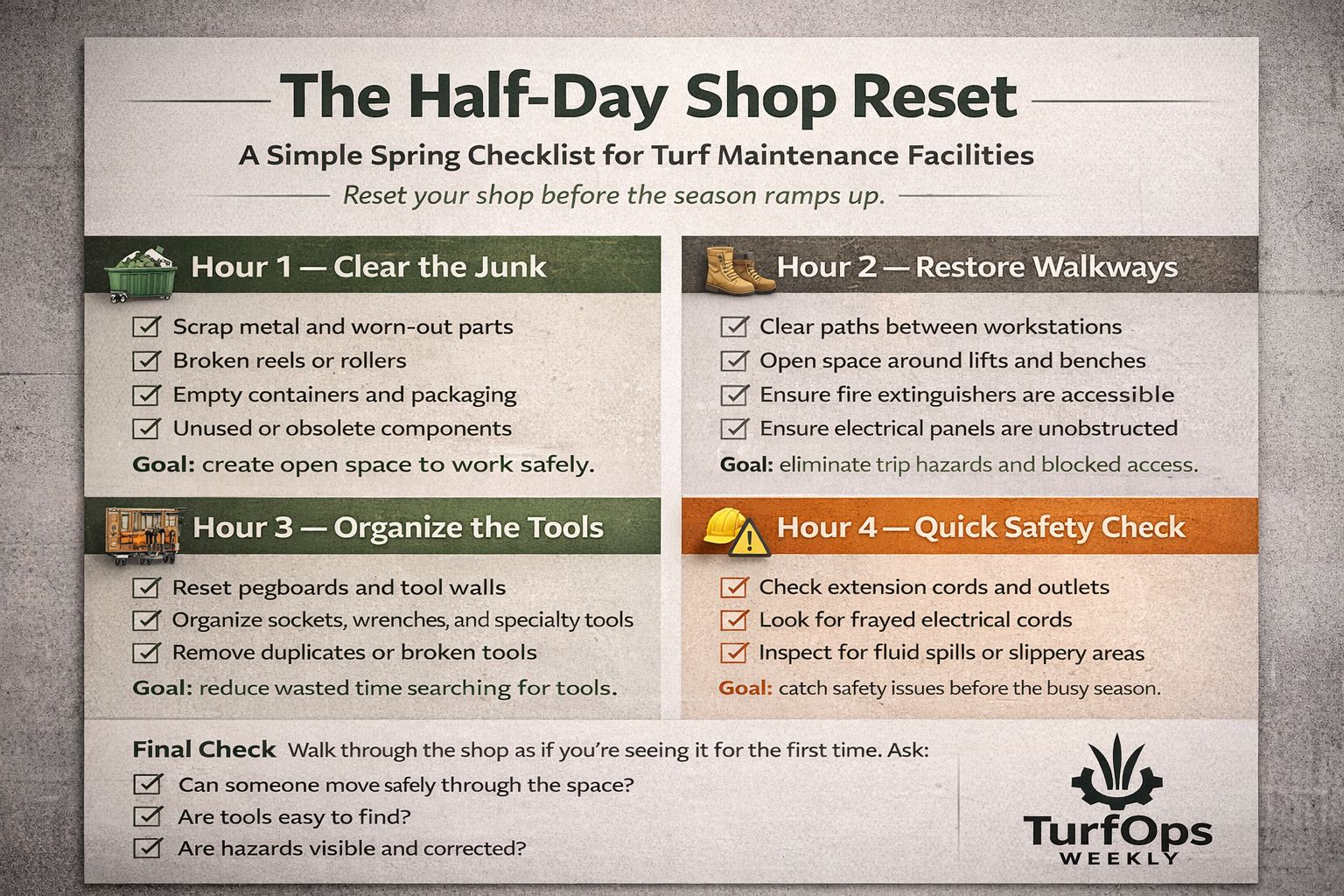It’s not a deep renovation or a complicated safety program. It’s just a focused reset that clears hazards, improves workflow, and gets the facility ready for the busiest months of the year.